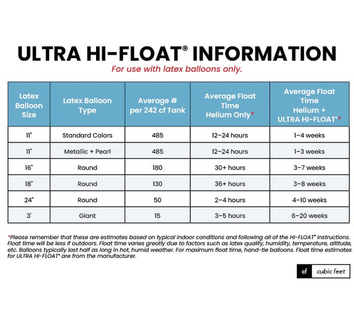 Hi-FloatOriginal price $29.99Original price $29.99 - Original price $29.99Original price $29.99Current price $24.99$24.99 - $24.99Current price $24.99| /5+ in stockUltra Hi-Float is the premium balloon treatment solution that dramatically extends the float time of helium-filled latex balloons. This professiona...